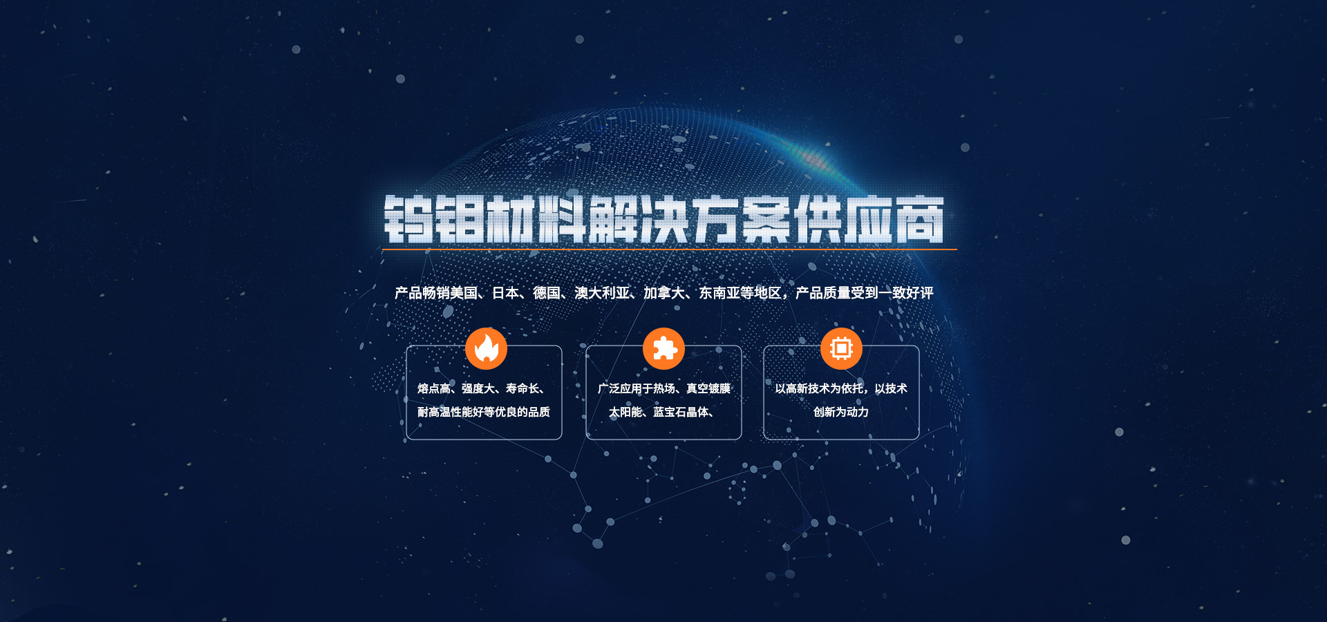 洛陽科神鎢鉬科技有限公司成立于貳零壹柒年陸月,位于洛陽市洛新產業(yè)集聚區(qū)東大科技產業(yè)園W2-4號,現已發(fā)展成為行業(yè)領***先的鎢鉬材料解決方案供應商。本公司下屬的洛陽聚晶鎢鉬科技有限公司東大鎢鉬加工廠是專**業(yè)生產鎢鉬及其合金制品的專**業(yè)制造工廠。所生產的產品以其熔點高、強度大、壽命長、耐高溫性能好等優(yōu)良的品質深受國內外用戶青睞。本公司生產的“聚晶”牌鎢鉬制品廣泛應用于熱場、真空鍍膜、太陽能、藍寶石晶體、光電子、半導體、特種陶瓷、光源照明、機械部件、玻璃制造、玻璃纖維,耐火纖維,稀土冶金、工業(yè)窯爐等諸多領域。其中,鉬板電極、鉬螺栓、鉬彎條專**業(yè)用于玻璃纖維爐用加熱電極材料;鎢合金棒電極、鉬棒電極、鉬流口、鎢(鉬)板、鎢(鉬)捅針專**業(yè)用于硅酸鋁纖維爐、玻璃電熔窯爐用加熱電極材料;鉬基鎢靶專**業(yè)用于CTX射線管和旋轉陽極X射線管;鎢棒、(鎢)鉬坩堝專**業(yè)用于稀土冶金行業(yè);銅鎢合金、碳化鎢銅專**業(yè)用于中、高壓開關管電觸頭材料;鎢(鉬)坩堝、鎢(鉬)隔熱屏、鎢(鉬)部件專**業(yè)用于真空爐、藍寶石晶體生長爐加熱室;本公司所生產的“聚晶”牌鎢鉬制品以其技術含量高、耐高溫性能好、電性能優(yōu)良、壽命長等特點,被越來越多的國內外企事業(yè)單位,研究機構所采用。產品暢銷美國、日本、德國、澳大利亞、加拿大、東南亞等地區(qū),產品質量受到一致好評。本企業(yè)已通過ISO9001:2008質量管理體系認證,真正以高新**技術為依托,以技術創(chuàng)新為動力,以質量過硬為宗旨,以誠實守信為信條。竭誠為國內外新老客戶提供優(yōu)**質的產品、良好的服務。我們熱忱歡迎您的惠顧,歡迎您的合作! 服務理念:誠信溝通零**距離,恭謙服務無極**限。經營理念:以人才和技術為基礎,創(chuàng)造出*高品質的產品和服務,為人類社會的發(fā)展做出貢獻。品質保證:材料,確保*高的性能。我們的傳統(tǒng):創(chuàng)新。創(chuàng)造的技術,新的視角。